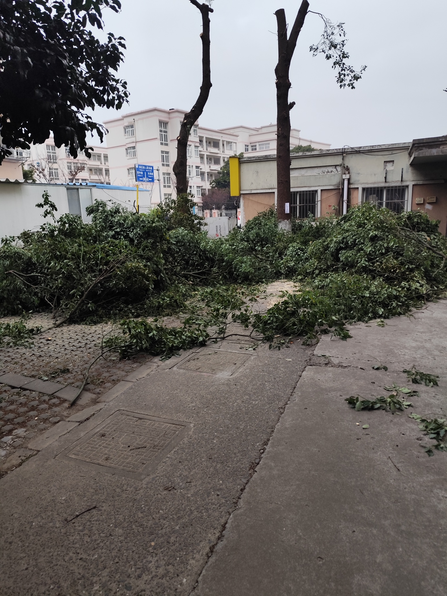 这个应该不是外面的野鸡部队修的,野鸡部队修的话这棵树起码还要锯掉一半,因为他们是不收钱的,锯下来的树几百块一吨去卖掉当人工的,树枝是卖不了钱的,所以都是一刀切