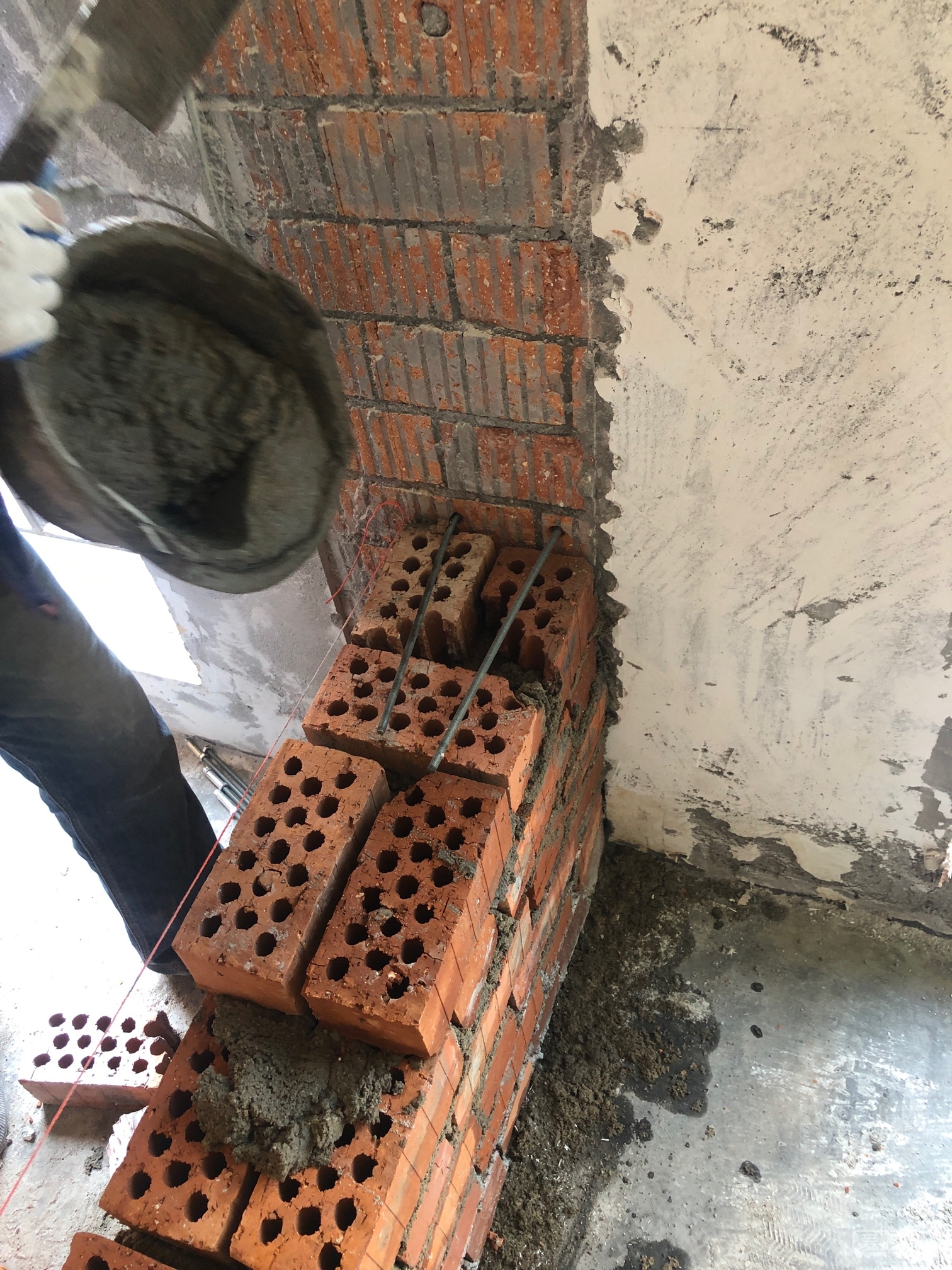 放空调的水泥墩子也砌好了,砌的不错