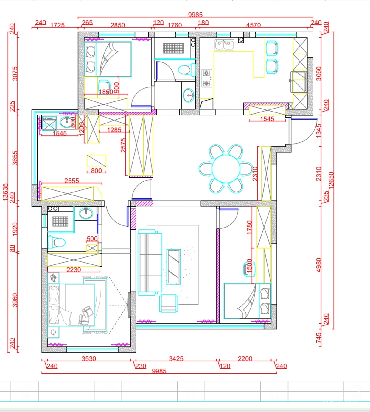 南阳台的非承重墙我都敲掉了,所以我家的客厅会显得特别长,客厅宽度大概3425(相对于在西边做客厅,其实面积差不多)。
