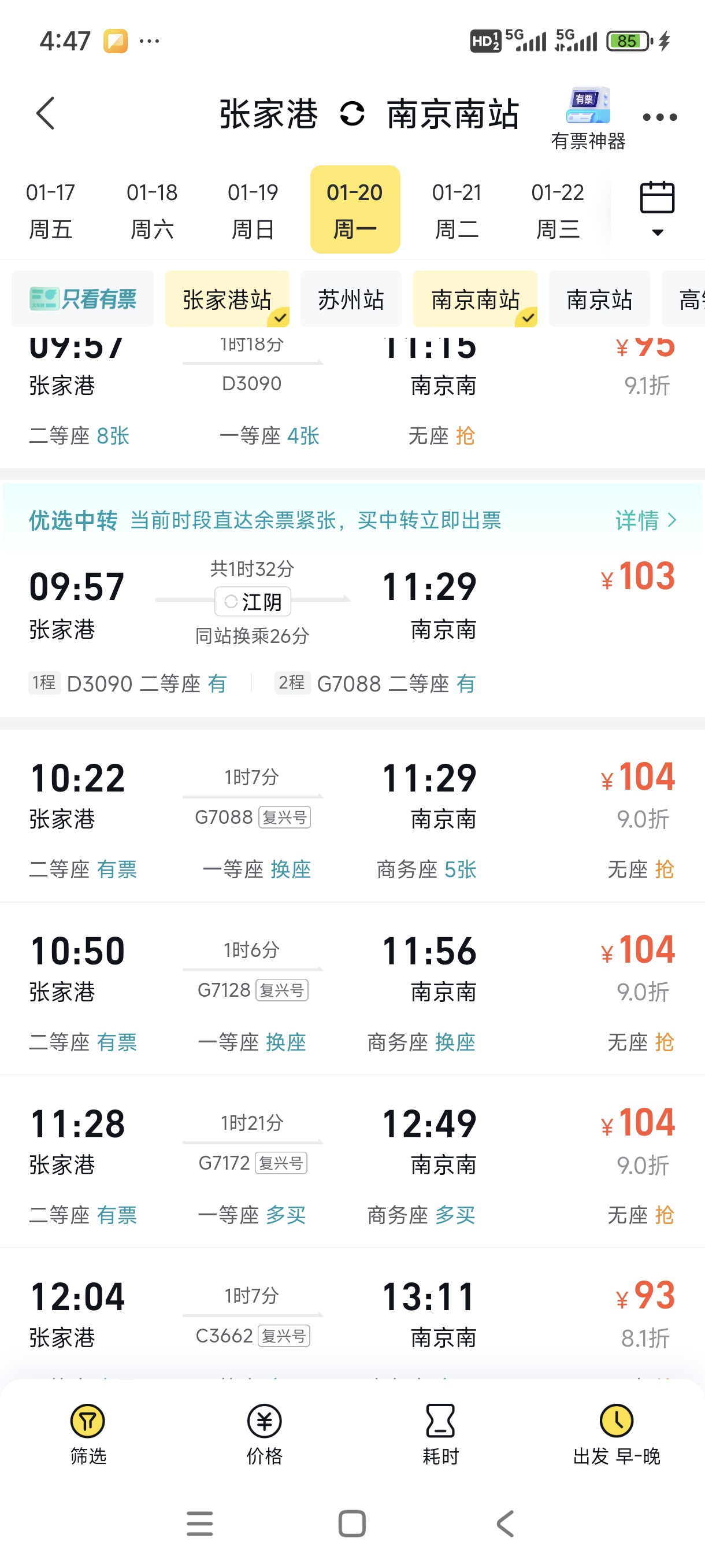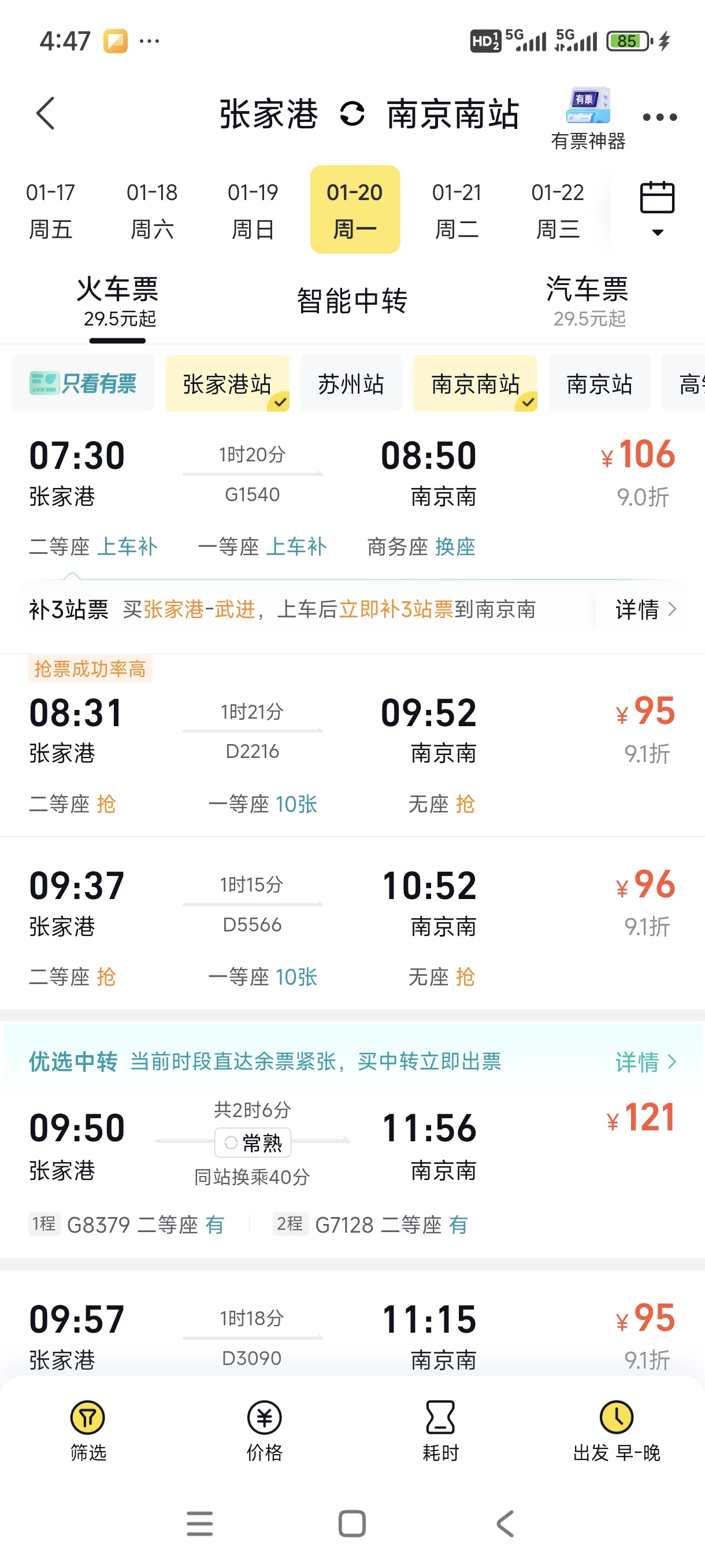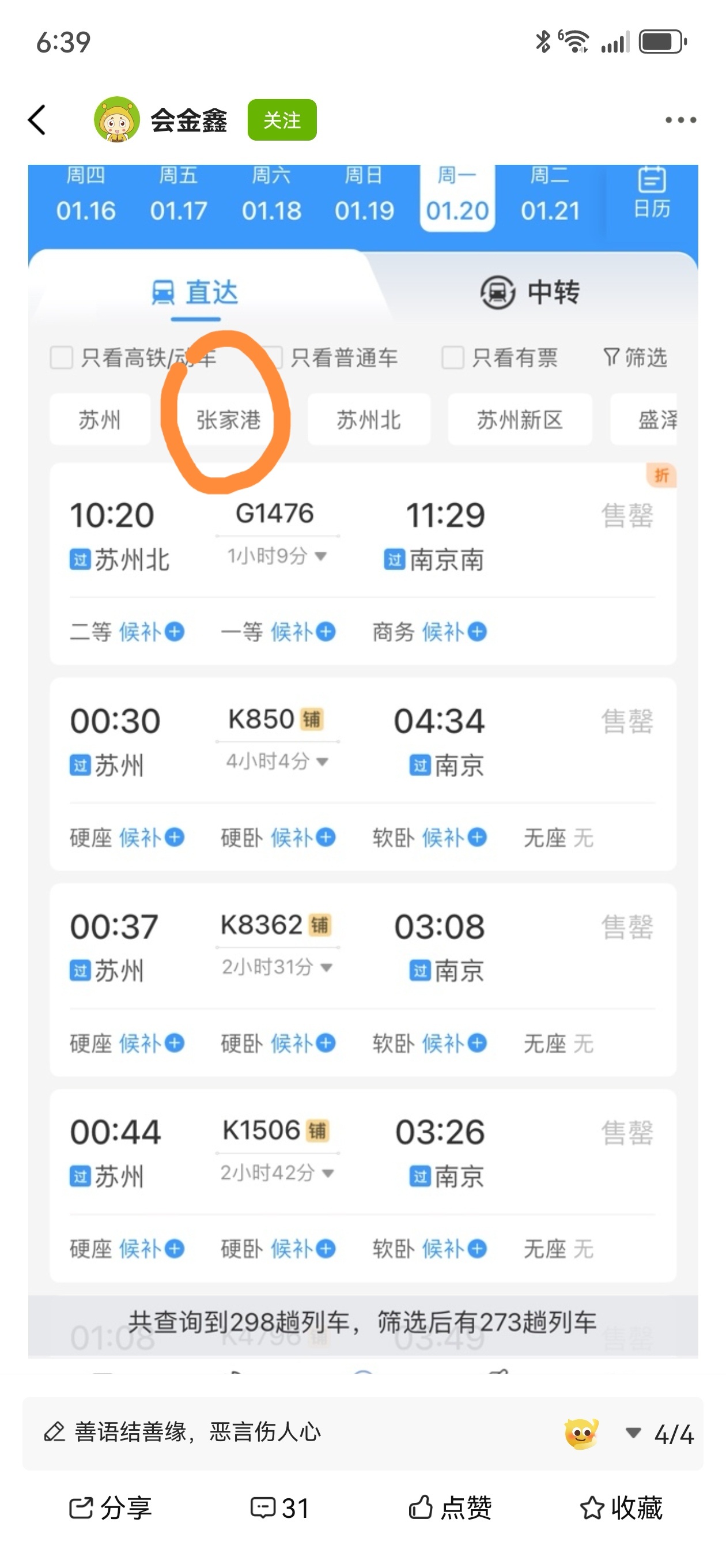 上面有选站的,选张家港