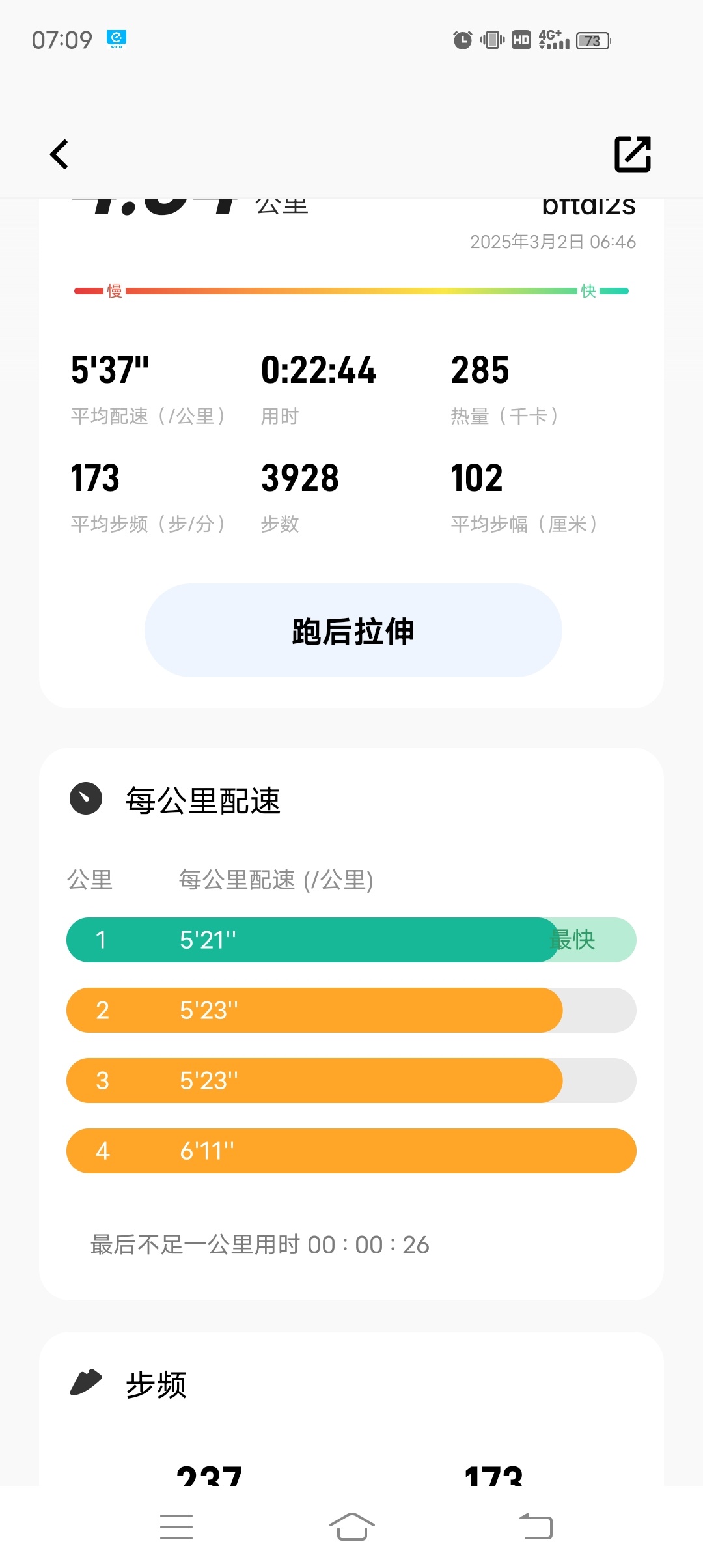 52岁 配速4分30秒 一公里