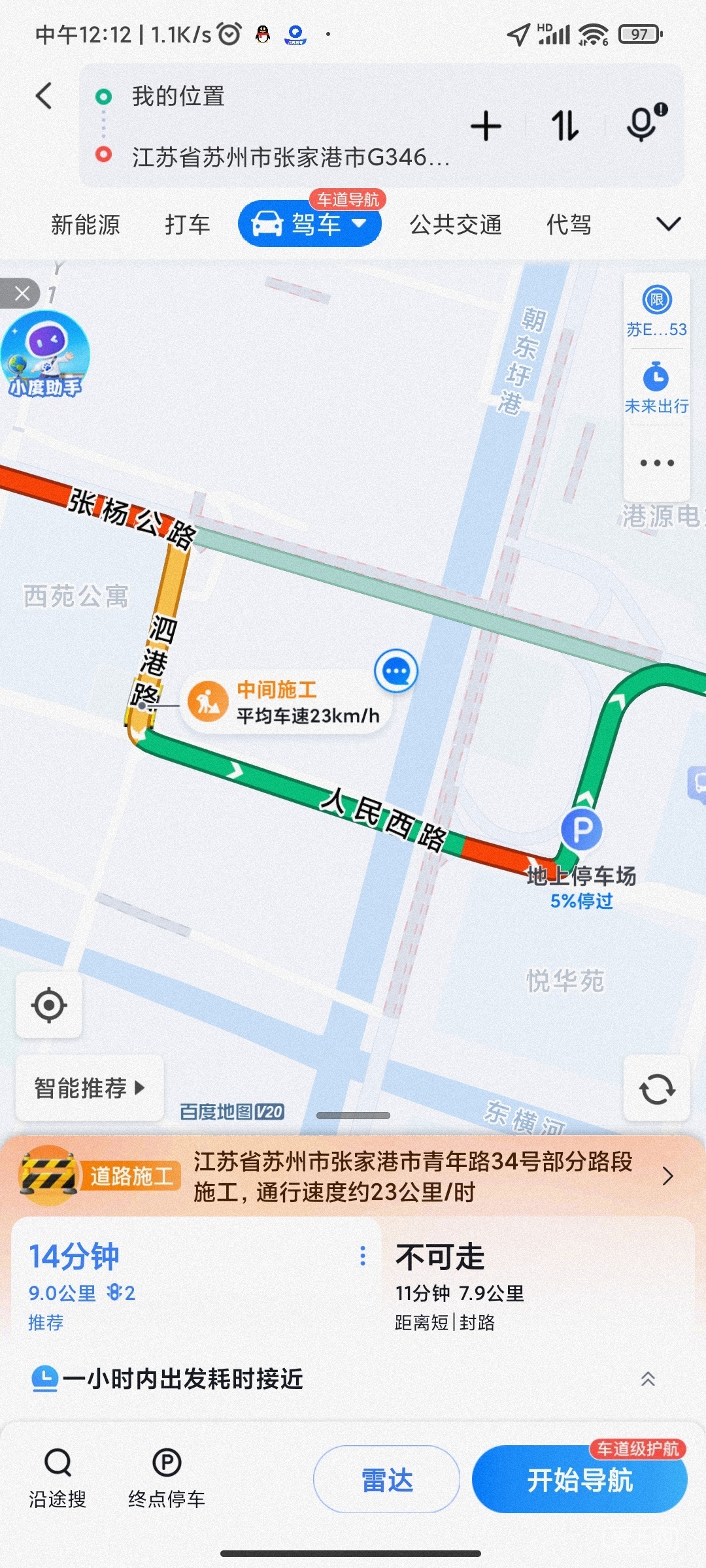 明天市区到保税区方向上班走张扬公路大概率会迟到。