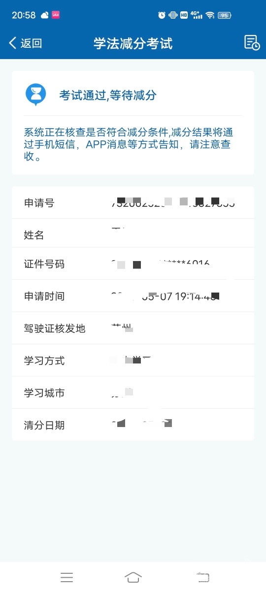 交掉罚款,要申请学法减分,通过申请后看30分钟视频,然后考试,可减一分,你要重复这样做6次