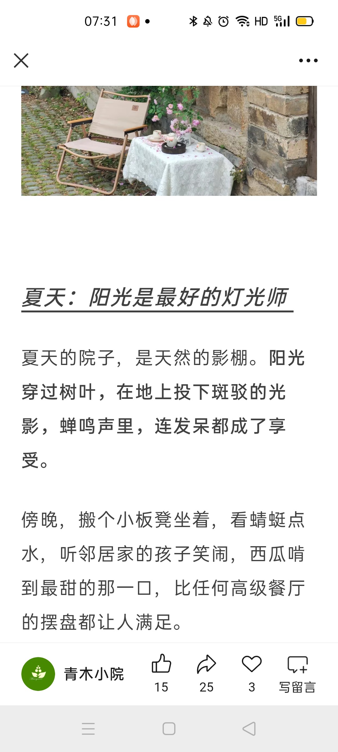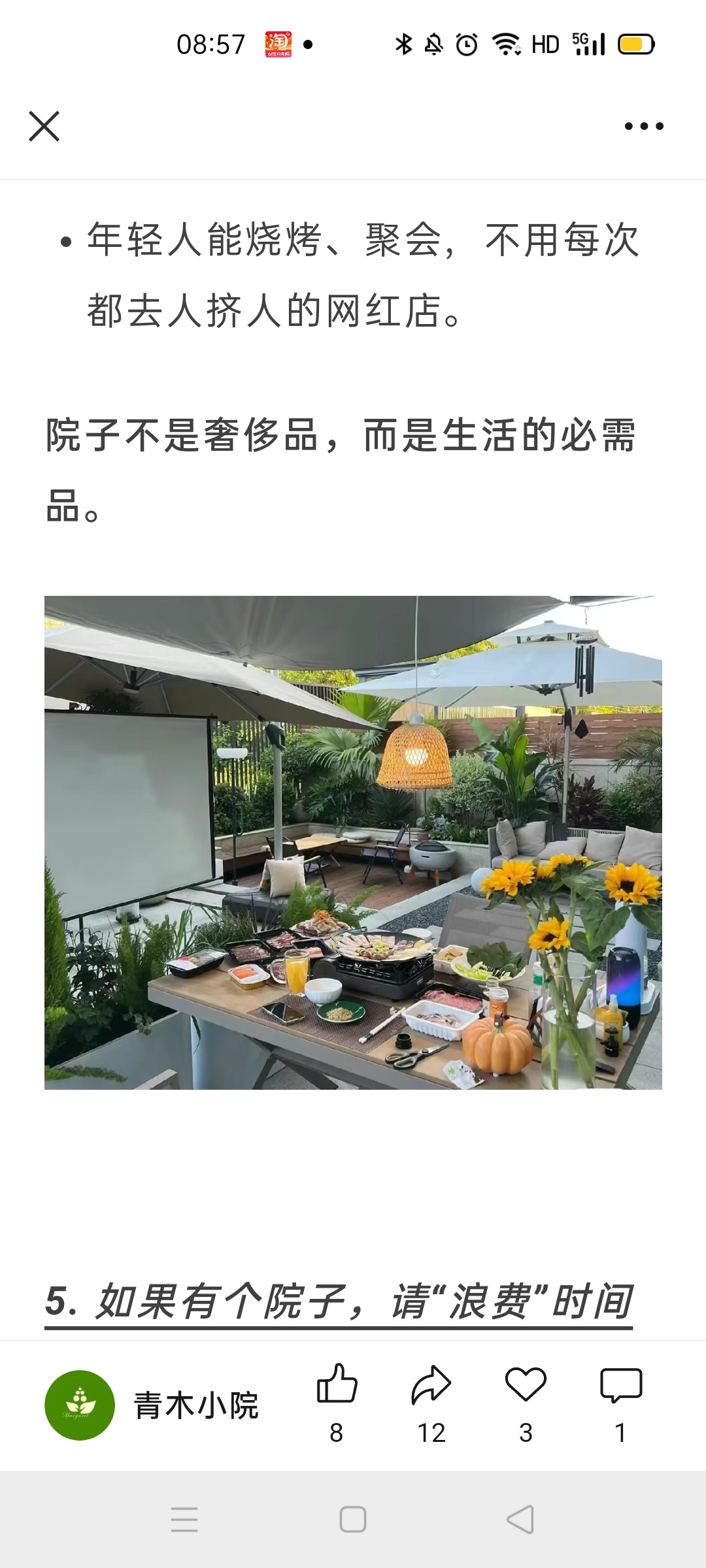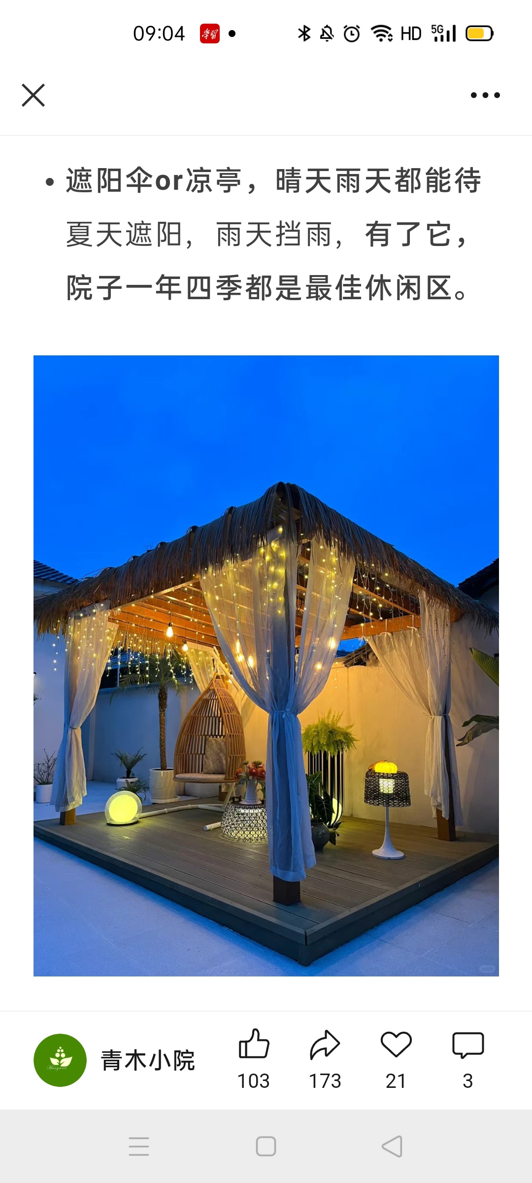 弄点花草,搞个凉棚,惬意