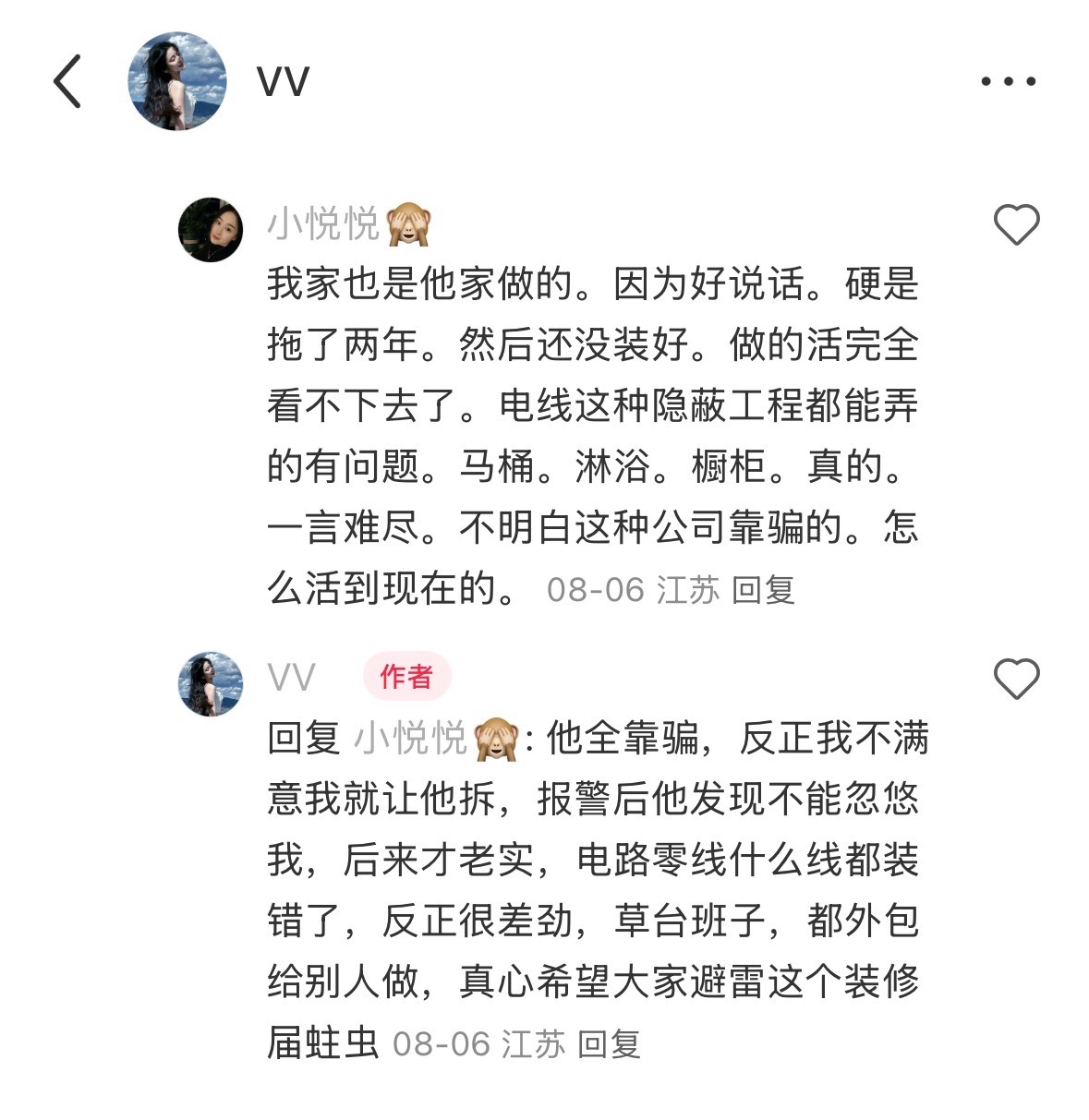 嗯 看到安徽人确认头大 虽然不是同一个装修公司 但是我们坐的装修公司老板也是安徽人,到最后也是走到报警的地步,太辣鸡了,一副超级无赖的小人样子,对着警察撒泼,连墙壁都没办法做平的装修公司 我都不知道他怎么有脸开公司的!!!