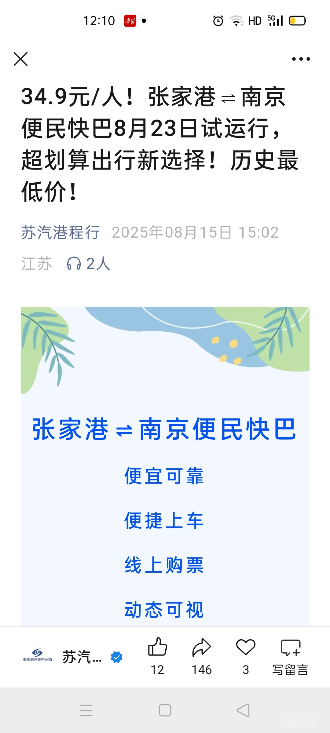 张家港到南京便民快巴今天开通了,一天来回有几班车