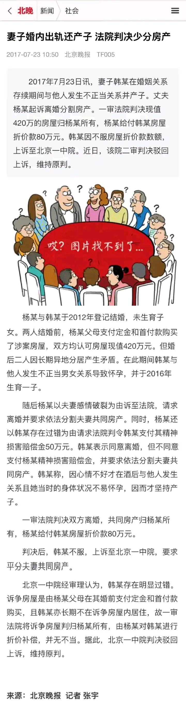 我给你另外一个案例:“妻子婚内出轨还产子,法院判决少分房产”。你粗看新闻标题是不是觉得女孩子婚内出轨和真爱生孩子,被法律惩罚了?结果细细一看,是男方爹妈出首付买房,婚后他老婆跑去和真爱生孩子。最后离婚,让男方赔偿女方80万。