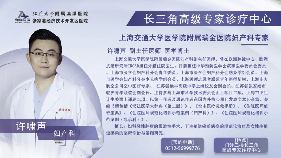 搜索并关注“张家港澳洋医院”微信服务号,自助菜单栏选择【网上就医】—【预约挂号】—【长三角高级专家门诊】选择科室进行预约。